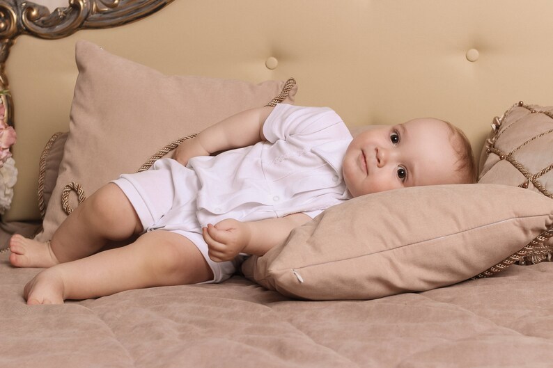Summer Outfit Newborn Romper Boy Baptism Outfit Baby Boy Romper Handmade Christening Outfit Christening Romper White